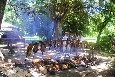 There is a typical welcome/starter of cold cuts, cheeses and beverages, and for lunch you will enjoy a typical Argentine country style asado prepared using only the finest quality meats. Dessert is accompanied by a folklore show, which is followed by a demonstration of gaucho skills.