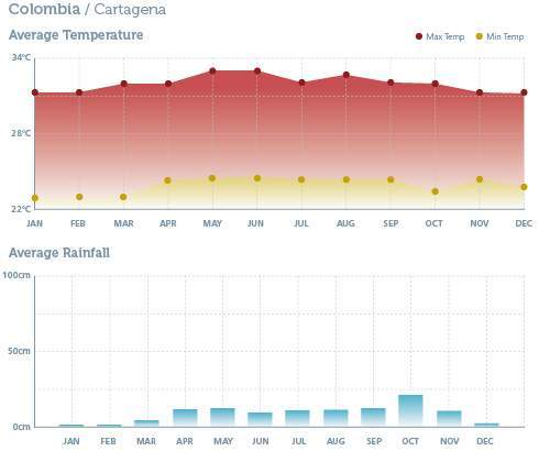 From May to July and October to December there can be frequent short, heavy showers, though they are usually followed by bright sunshine. Note that it can be cooler when visiting areas at altitude, such as Bogota.