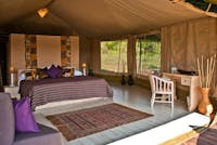 On arrival into the airstrip, you'll be welcomed and transferred to Kicheche Valley Camp for a three-night stay, with all meals, laundry, transfers and game drives in custom built 4×4 vehicles for two excursions daily, included.