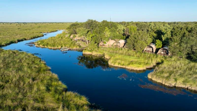 Start by leaving the everyday behind and taking to the air for your first bush flight, landing deep within Moremi Game Reserve in the Okavango Delta. Here, you have two nights at Okuti, a relaxed camp set among lagoons and floodplains, where your days are shaped by wildlife activity. Guided game drives and boat-based safaris reveal a landscape known for predators, elephants and birdlife.